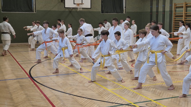 Die drei Großmeister dieser vielseitigen Körperkunst der Verteidigung waren an diesem langen Wochenende der Bundestrainer aus Deutschland, Akio Nagai shihan (9. Dan), der Bundestrainer aus der Schweiz, Rikuta Koga shihan (9. Dan), sowie Yasuyuki Aragane shihan(8. Dan) vom SKAI Japan. Und obwohl gerade an diesem Wochenende die Temperaturen teilweise unter die 20 Grad Marke rutschten, blieb kein Karate-Gi (Trainingsgewand) trocken. Denn bei Grundschule, Partnerübungen und Kata (festgelegte Technikkombinationen in verschiedene Richtungen) sind alle ordentlich ins Schwitzen gekommen.