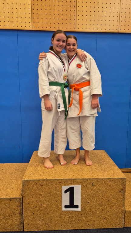 Bei der Internationalen - Nachwuchsmeisterschaft in Unterschleißheim (Deutschland) starteten beide in der Kata-Kategorie bis 15 Jahre und bis Blau Gurt.